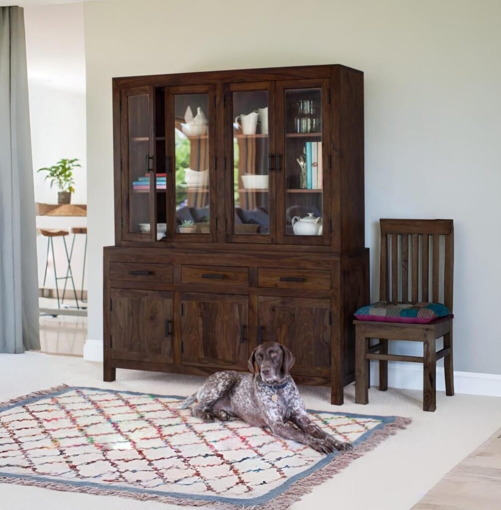 A classic furniture design dining room wall storage cabinet, brings timeless elegance and charm to your room. Made of solid dark wood with glass-fronted panels, it beautifully exhibits all your favourite crockery and collectables. The classic cabinet design is the perfect addition to any traditional diing room, sure to add warmth and character. You can pair it with a large sideboard cabinet for extra storage while adding functionality and appeal. An antique wall cabinet is perfect for the homeowner who will appreciate a vintage dining room interior with a contemporary twist: It’s all about nostalgia meeting modern elegance, offering up an inviting dining space.