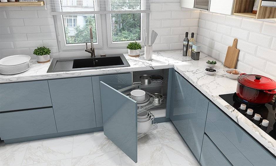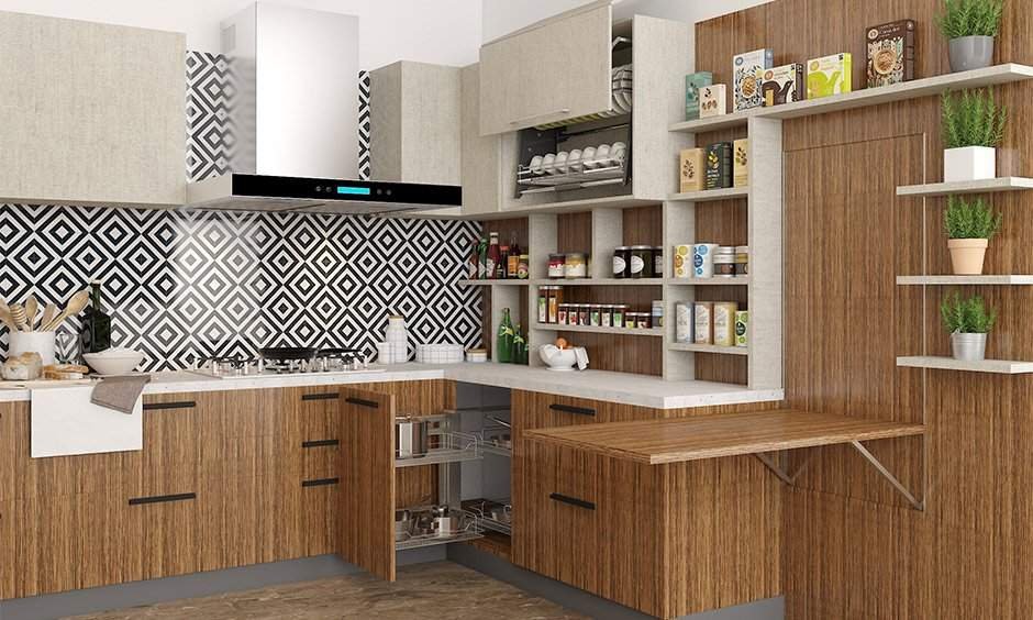 With a lack of space in most apartments today, chances are that you’re struggling to find storage to stuff the many-to-use-later items that every Indian kitchen possesses. Using that teeny extra space in every nook and corner to build extra kitchen cabinets can go a long way in catering to your extra storage requirements. Go ahead and put as tight as you can those kitchen walls, just so that you can de-clutter in the future.