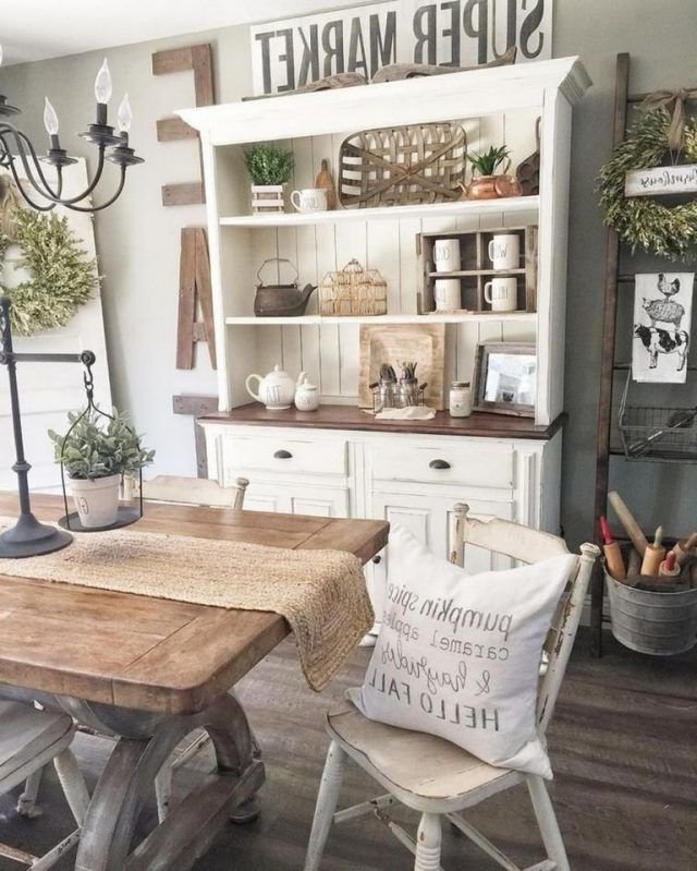 As per countryside design trends, the rustic farmhouse buffet and hutch wall cabinet brings simple village charm to your dining room interior design. Regarding dining room furniture, this design gives your home a natural farmhouse look. This furniture is actually made from old-style wood and definitely has many storage spaces with shelves, drawers, and glass doors. It actually makes keeping things organized very easy. As per this design, you can display your dishes and glasses nicely while keeping daily items stored properly.