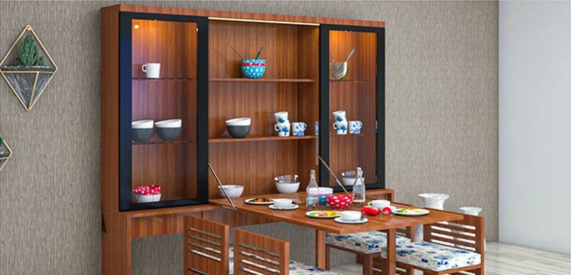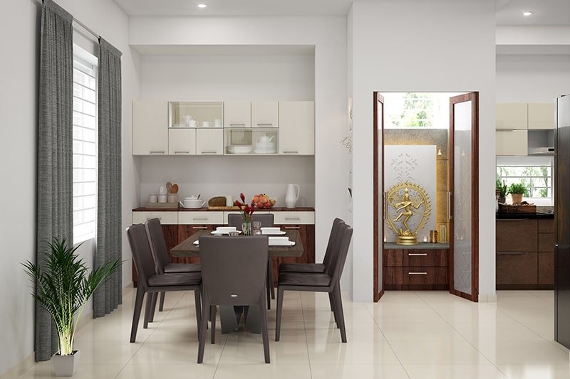 Further, a sleek wall cabinet design can further enhance your dining room’s appearance and functionality itself. This simple addition transforms the entire space effectively. Modern cabinets actually combine smooth wood with glass parts. They definitely create stylish storage that works well for homes. White or neutral cabinets with glass doors surely help display your good dishes while keeping all utensils properly arranged. Moreover, these cabinets make your modular kitchen look neat and organized. These designs surely utilize the unused wall space effectively, making the dining area free from clutter.