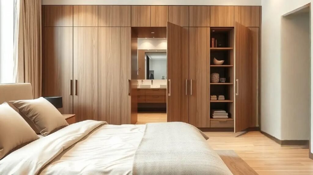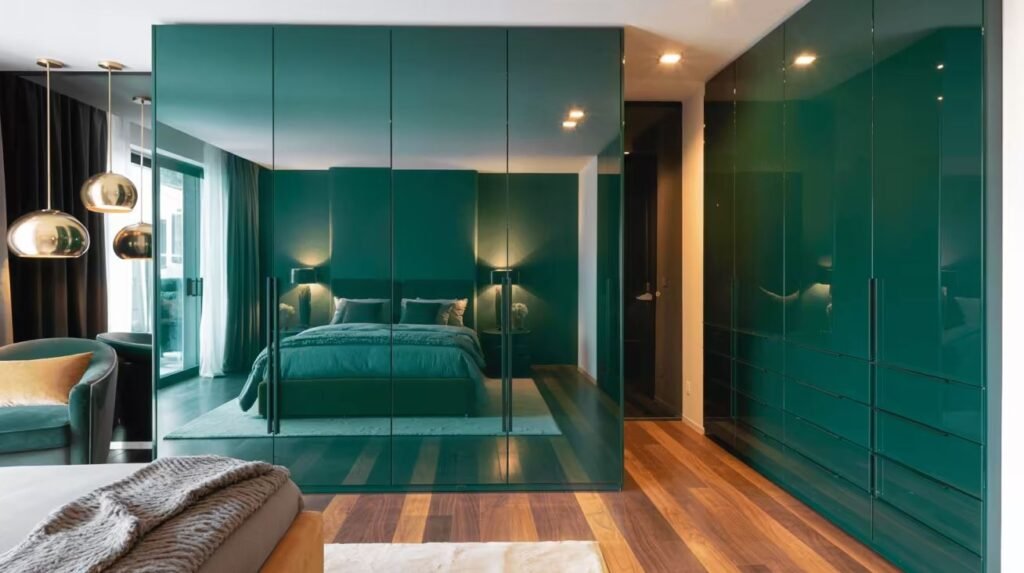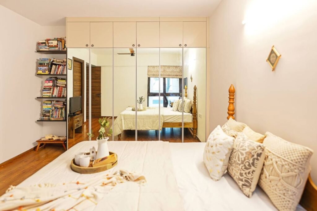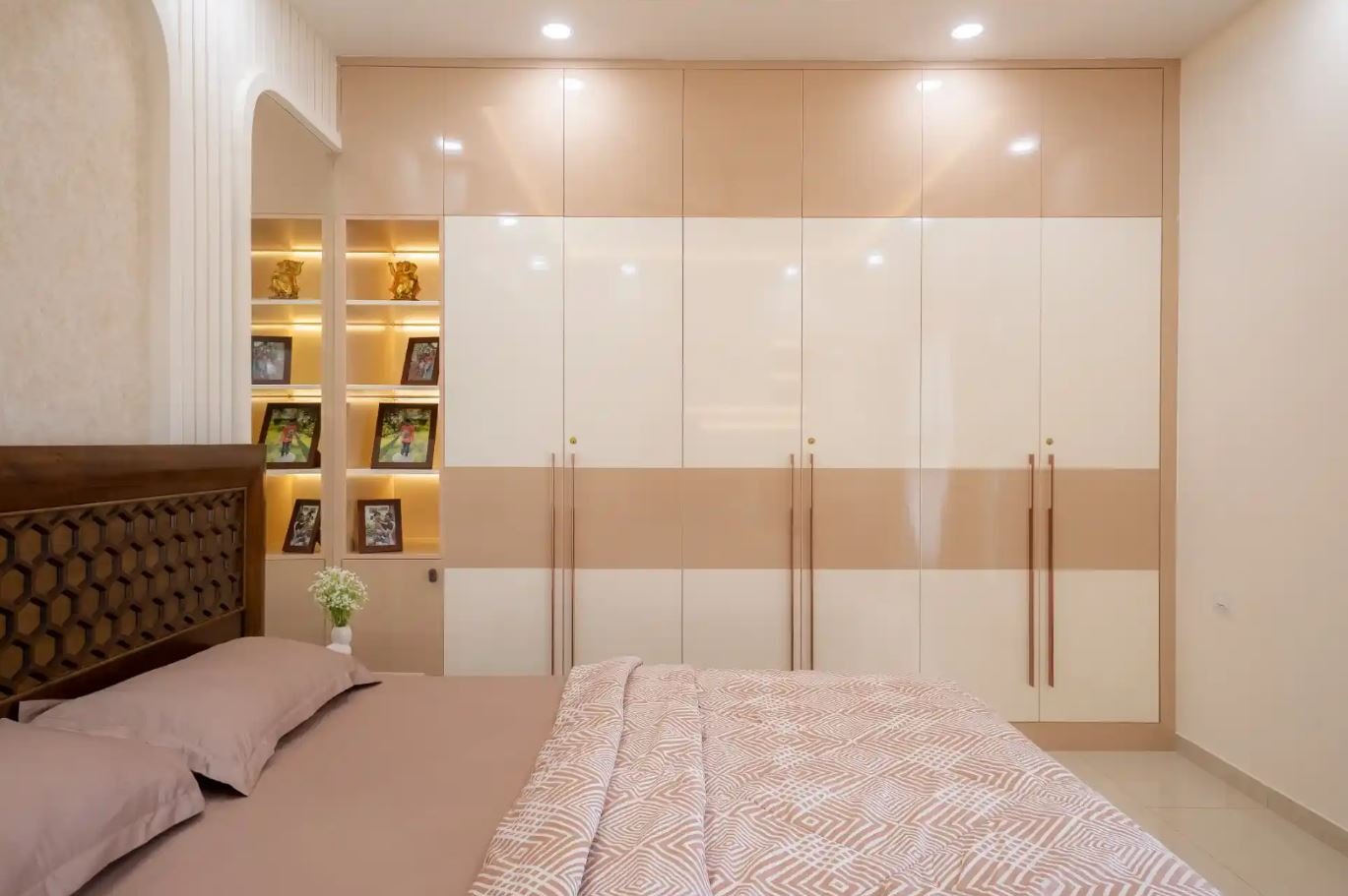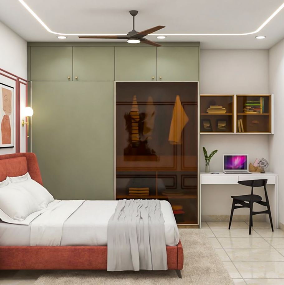 Slick wardrobe finishes are an intelligent decision with a small bedroom because they bounce light and make it seem like a more spacious room. Their surface is sleek which enhances brightness, and this is further enhanced by marble-effect tiles that further add the level of light on the room. This combination not only adds a glimpse of a modern exquisiteness but provides a feeling of spaciousness and hospitability in the bedroom. Their size can easily fit in the tight spaces of Indian apartments and will offer both style and utility without overwhelming the overall design of the room.