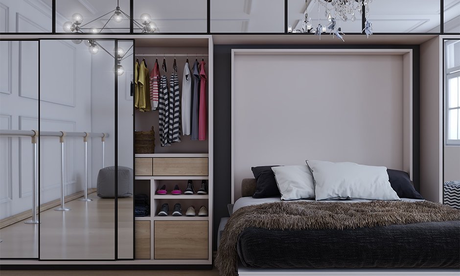 When you own an apartment or a multi bedroom flat in any of the urban cities in India, you must have definitely considered the usual pillars, particularly those found in the master bedrooms. Should you wish to conceal these pillars, then a wardrobe built in and to the full length and height of the pillar would be the most modern cupboard design in the bedroom. By creating a wardrobe around the pillar, not only do you save space but you will also discover that this style is not only beautiful but it also appears space-efficient!